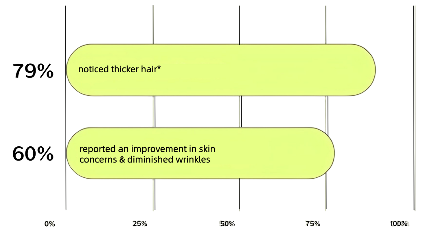 OVER 12 WEEKS,PARTICIPANTS REPORTED FASTER HAIR GROWTH AND HEALTHIER SKIN: